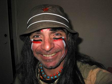 Ειλικρινά δε θυμάμαι αν μπήκαμε στο πάρτι, ή αν φύγαμε γιατί το πάρτι είχε σχολάσει – ήταν και κάτι 4 το πρωί! Είναι όμως μια ιστορία που τη λέμε και γελάμε μετά από τόσα χρόνια.Την έλεγα και στη γυναίκα μου και όταν κάποτε κάναμε ένα μασκέ πάρτι στο σπίτι μας (απ΄όπου και η φωτογραφία) ο Μπεχράκης έσκασε μύτη βαμμένος στα χρώματα του πολέμου