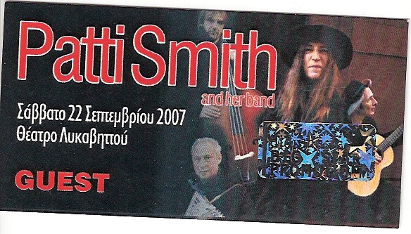 Το πάσο της Πάτι είναι άθικτο γιατί ποτέ δεν τα κατάφερα να ανέβω στο Λυκαβηττό. Ένας γαμημένος τελειοκαλοριάτικος πυρετός με τσάκισε! Τελικά δεν είχε πει και το White Rabbit αν θυμάμαι καλά τι μου είπαν όσοι πήγαν, οπότε έμεινα να τη θυμάμαι μόνο από το Rockwave του Αγίου Κοσμά!