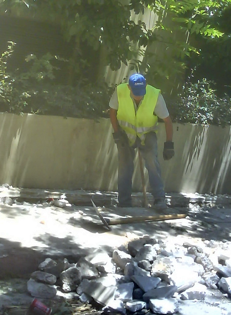 … με το που βγήκα από το γκαράζ – ευτυχώς που το έχουμε και δεν αναγκαζόμαστε να μπαίνουμε στα πυρωμένα από το λιοπύρι αυτοκίνητα – έπεσα πάνω σε έργα του Υπουργείου Ανάπτυξης, που γειτονεύει με το Μέγκα. Κοίτα, είπα μέσα μου, τους πούστηδες περίμεναν να βράσει ο τόπος για να  αρχίσουν τα σκαψίματα! Μετά – επειδή προσπαθώ να είμαι καλός – σκέφτηκα: ίσως κάποια ξαφνική βλάβη τους τα διέλυσε όλα και αναγκάστηκαν να βγάλουν τους εργάτες με 38 βαθμούς να σκάψουν για να βρουν το λάθος. Το φανάρι Ρούσου και Μεσογείων είναι ίσως το φονικότερο φανάρι της Αθήνας. Τό ‘χουμε κάνει ρεπορτάζ στην εκπομπή αλλά έχει τιμηθεί από τα ελεύερα ρεπορτάζ και πολλών εφημερίδων. Ελάχιστα δευτερόλεπτα που μόνο με κινέζο προμηθευτή μπορείς να διασχίσεις τον άδειο δρόμο πριν γεμίσει από τετράτροχες τε και δίτροχες μαινάδες. Παρά λοιπόν το γεγονός ότι περίμενα σε ένα φιλικό προς τα ι.χ. φανάρι αργούσα να προχωρήσω και το μόνο που έκανα ήταν να κοιτάζω τους εργάτες. Αυτός που βλέπεις να είναι σκυφτός πάνω στον κασμά του, πες μου αν έχεις το θεό σου (τον όποιο, δε θα τα χαλάσουμε τώρα σ’ αυτό) δεν έπρεπε να είναι με τα εγγονάκια του σε μια παραλία, ή έστω κάτω από μια μουριά με παχύ ίσκιο και να τους λέει παραμύθια καθαρίζοντάς τους δροσερά ροδάκινα? Κι όμως τα λίγα λεπτά που η αφεντιά μου τον παρατηρεί σκάβει πάνω στο αυλάκι που άνοιξε κάποιο κομπρεσέρ, σπάσει τις λιγότερο σπασμένες πλάκες, τις πετάει στο σωρό, σκουπίζει τον ιδρώτα του, φτύνει τις παλαμές του και ξαναπιάνει τον κασμά. Λίγα μέτρα παρακάτω κι άλλοι εργάτες, εμφανώς νεότεροι σε συνεχίζουν το δημόσιο έργο που είπαμε και παραπάνω αποφασίστηκε από τύχη ή από την γνωστή σου ελληνική μαλακία να γίνει μέρα με 38 βαθμούς. Η ζωή συνεχίζεται κι έτσι το φανάρι μου επέτρεψε να συνεχίσω κι εγώ για το σπίτι μου. Κάθε φορά που βλέπω ανθρώπους στην ηλικία του πατέρα μου να σκάβουν ντρέπομαι για μένα γιατί όταν είμαι πολύ κουρασμένος λέω: "λες και δούλευα σε γιαπί"! Είναι ύβρις – με όσο βάρος κουβαλάει αυτή λέξη μέσα της τόσους αιώνες. Υβρις-ξε-ύβρις το λέω πάντως κι ας λένε ότι η αμαρτία η ξομολογημένη δεν είναι πια αμαρτία!