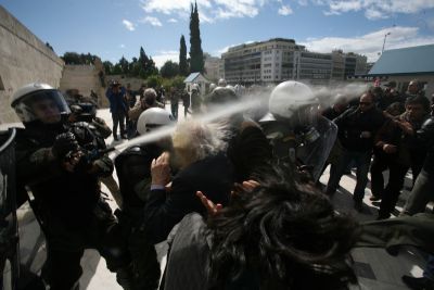 Μα ρε πούστη μου είναι δυνατόν να ψεκάζεις με δακρυγόνα τον Μανώλη Γλέζο! Ό,τι κι αν είσαι, όσο μπάτσος από άποψη, ή επειδή η σχολή σου έδινε αμέσως δουλειά, τον τελευταίο εν ζωή ήρωα βρε μαλακισμένο δεν τον ψεκάζουν, του ανοίγουν το δρόμο, υποκλίνονται, του δίνουν το χέρι !!! Ελεος πια!!! Γαμώ το Τζουλιστάν που ΄χουμε για πατρίδα!!!