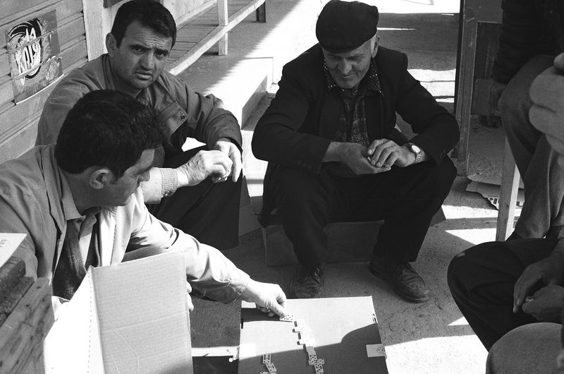 Άντρες, παπούδες ή και μπαμπάδες όπως μαρτυρούν τα πιτσιρίκια που τιτιβίζουν τριγύρω, παίζουν ντόμινο και φαίνεται ότι περνούν καλά.